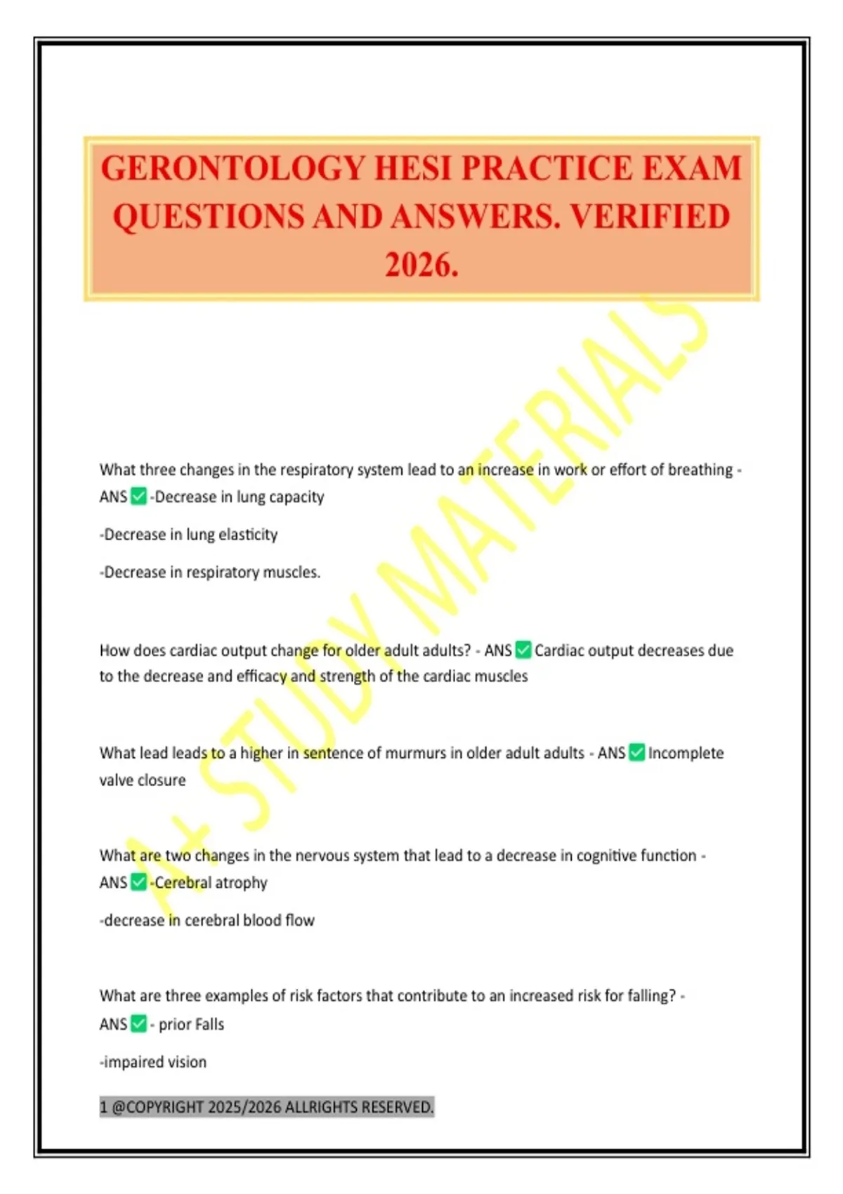 GERONTOLOGY HESI PRACTICE EXAM QUESTIONS AND ANSWERS. VERIFIED 2026