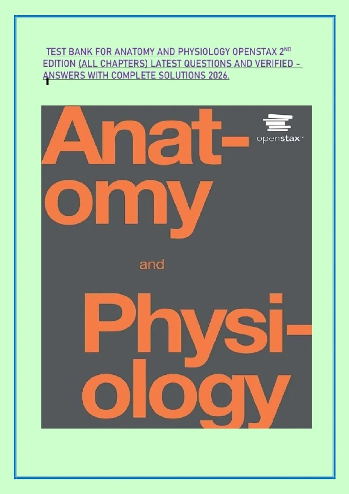 TEST BANK FOR ANATOMY AND PHYSIOLOGY OPENSTAX 2ND EDITION (ALL CHAPTERS) LATEST QUESTIONS AND VERIFIED - ANSWERS WITH COMPLETE SOLUTIONS 2026.
