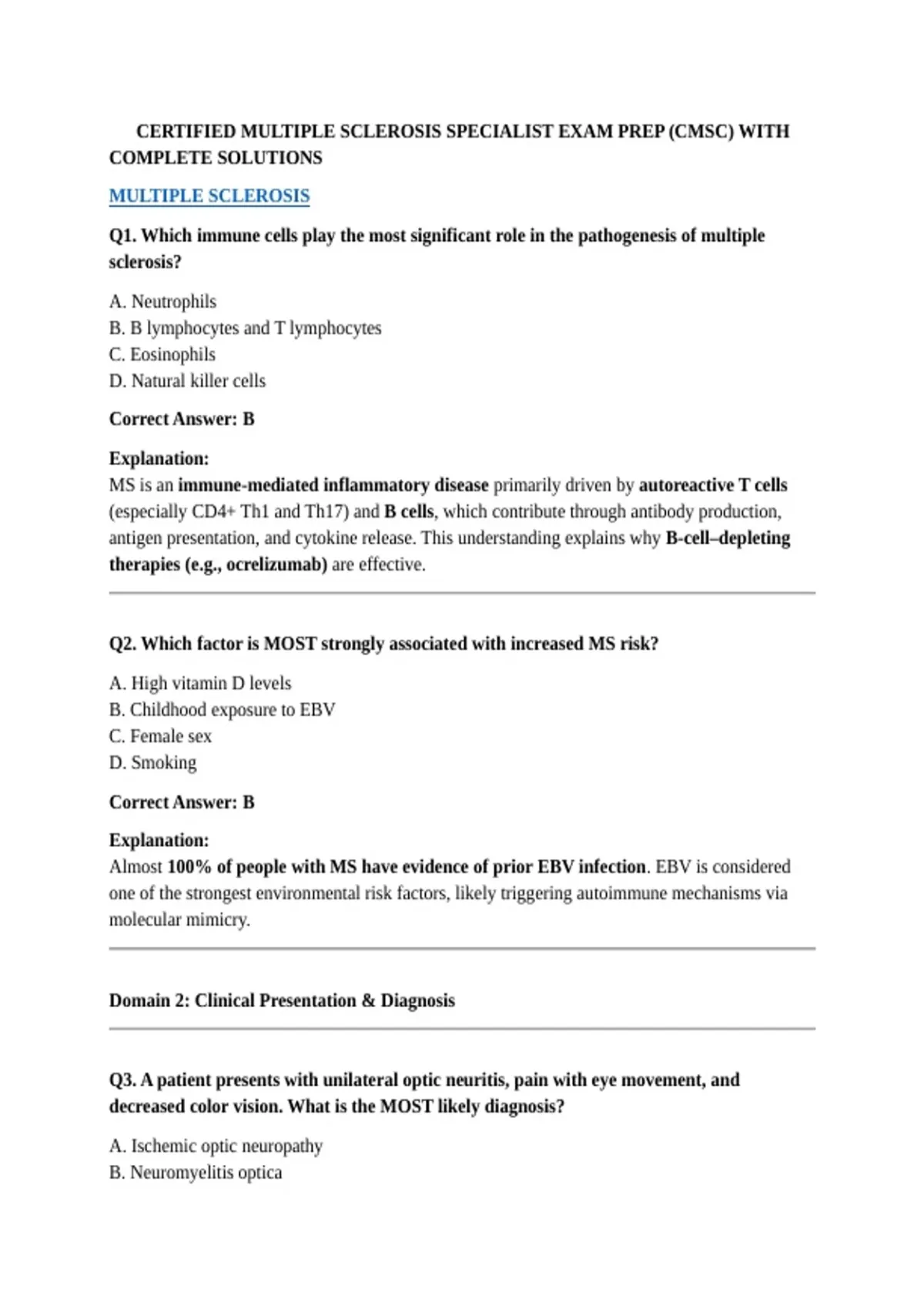 CERTIFIED MULTIPLE SCLEROSIS SPECIALIST EXAM PREP (CMSC) WITH COMPLETE SOLUTIONS