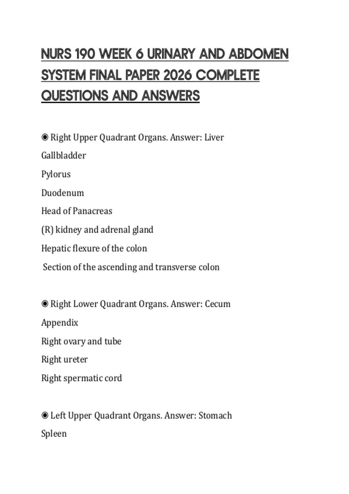NURS 190 WEEK 6 URINARY AND ABDOMEN SYSTEM FINAL PAPER 2026 COMPLETE QUESTIONS AND ANSWERS