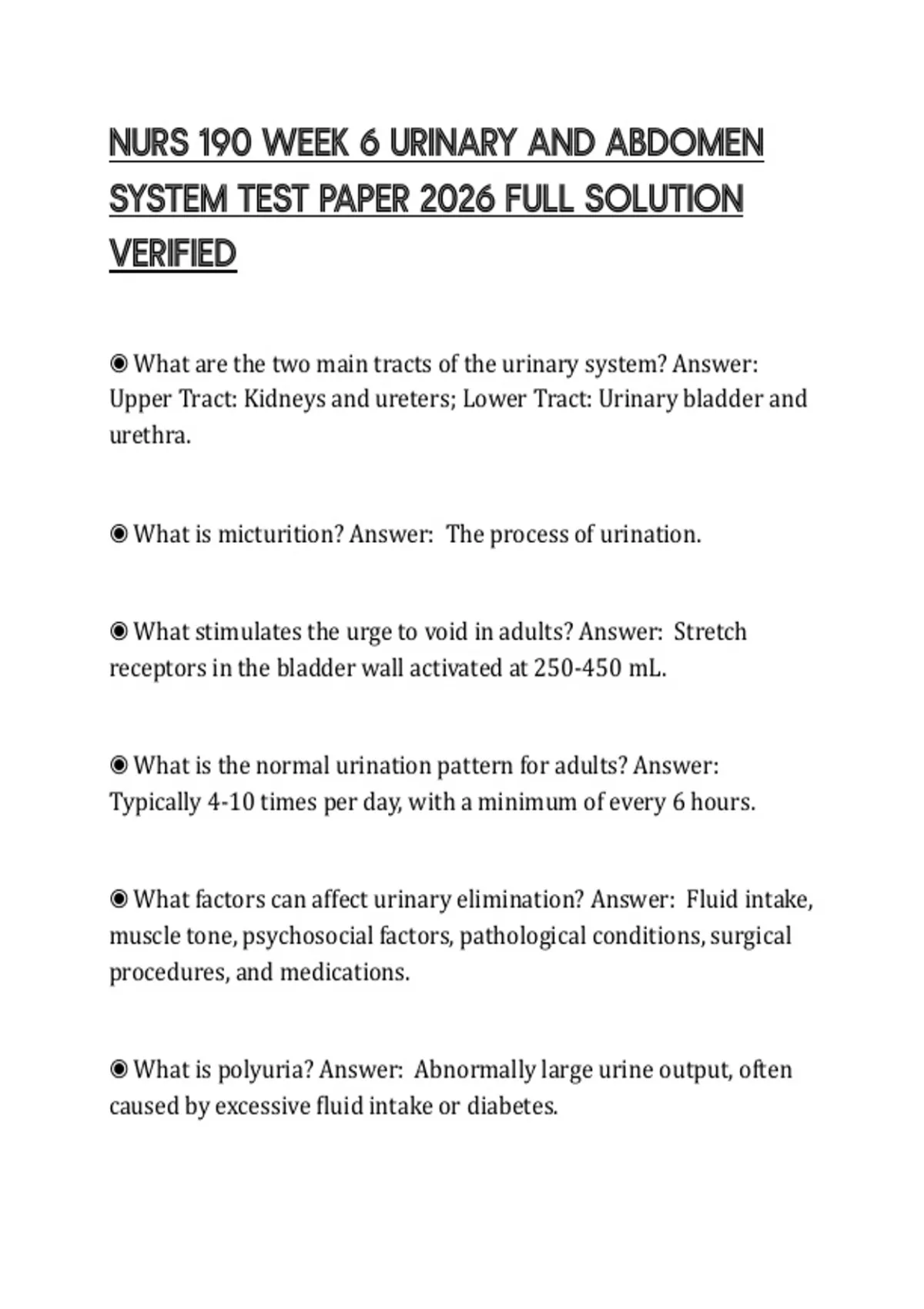 ◉ What is the role of diuretics in urinary function? Answer: