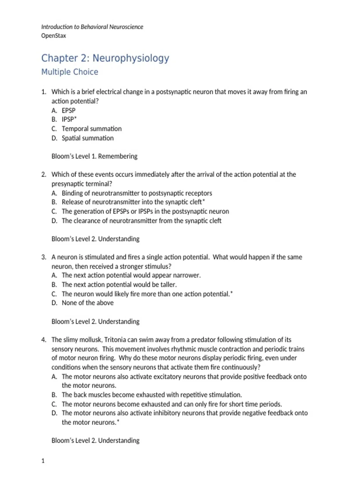 Introduction Behavioral Neuroscience Test Bank Chapter 2 Complete Exam Prep Resource 2025/ 2026