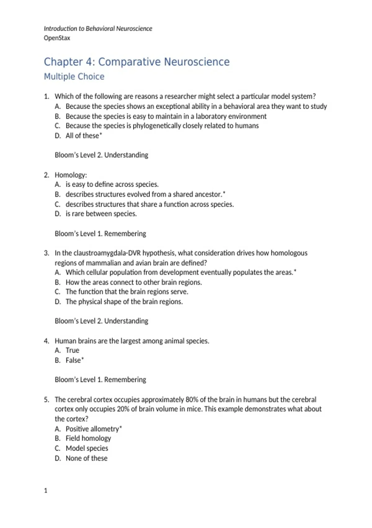 Chapter 4: Comparative Neuroscience