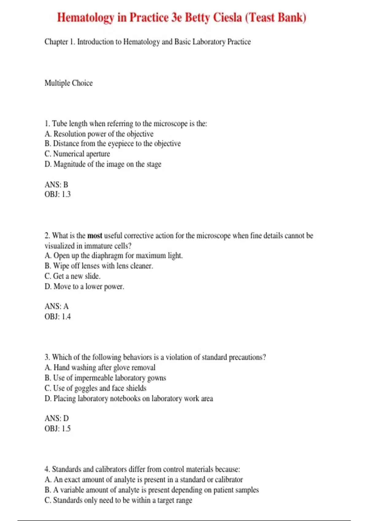 Test Bank For Hematology in Practice 3rd Edition By Betty Ciesla 9780803668249 Chapter 1-21 Complete Guide . Test Bank For Hematology in Practice 3rd Edition By Betty Ciesla 9780803668249 Chapter 1-21 Complete Guide .