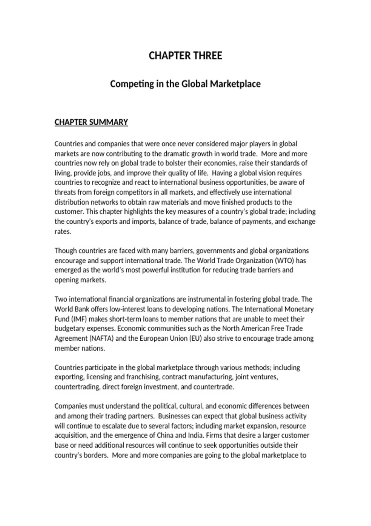 Competing in the Global Marketplace