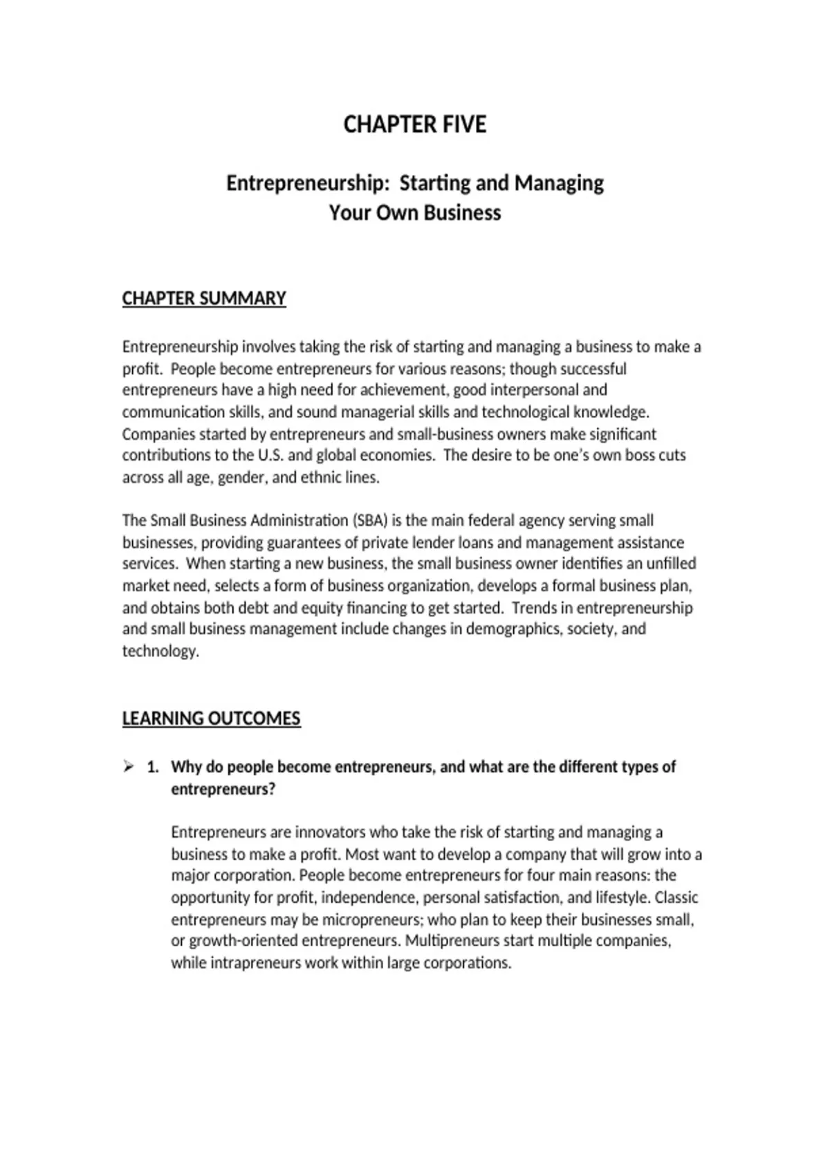 Entrepreneurs are innovators who take the risk of starting and managing a