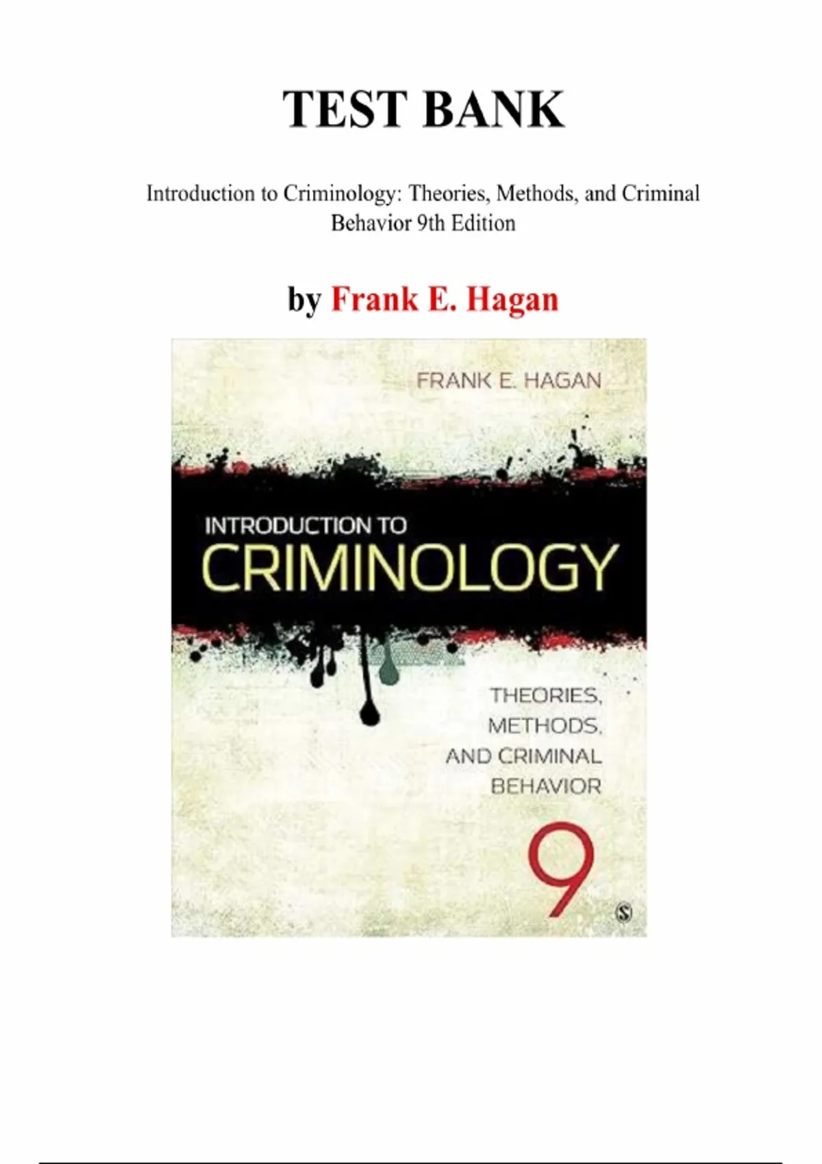 Introduction to Criminology: Theories, Methods, and Criminal Behavior – Frank E. Hagan | 9th Edition Test Bank (Chapters 1–15)