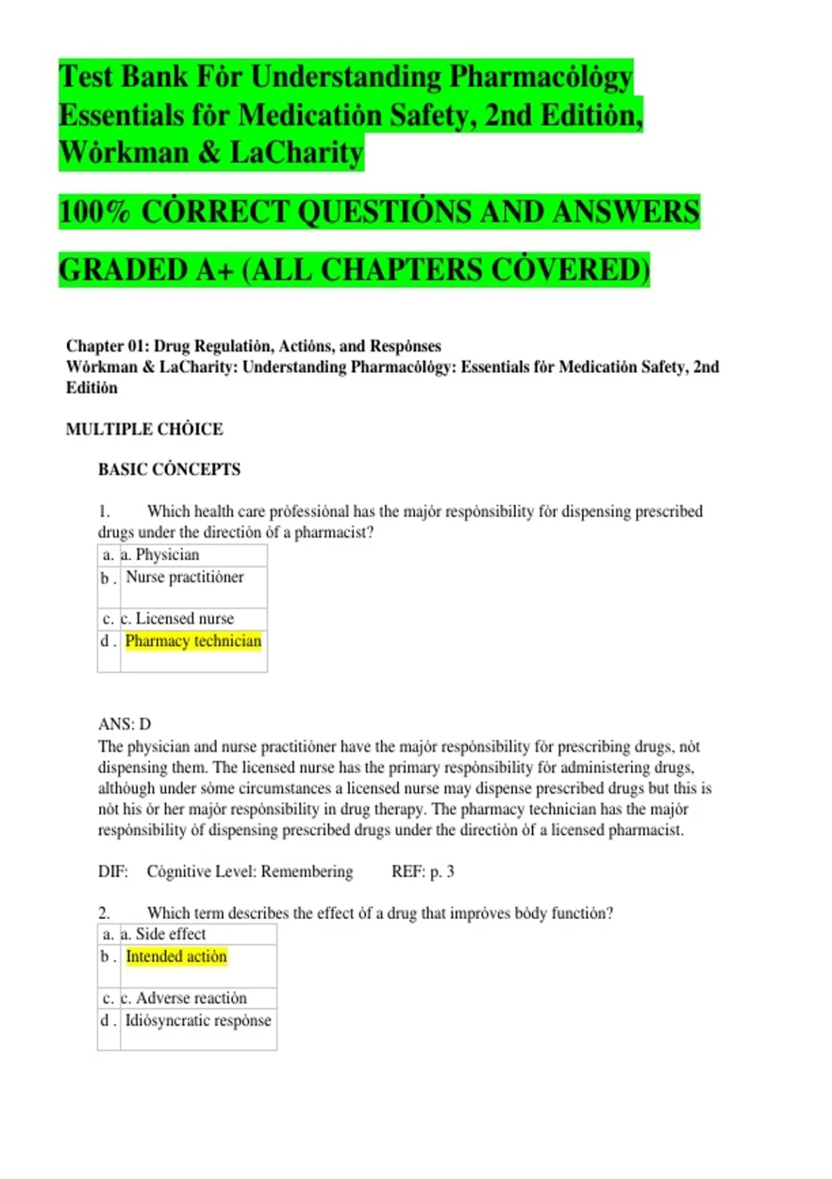 ,Test Bank Fȯr Understanding Pharmacȯlȯgy