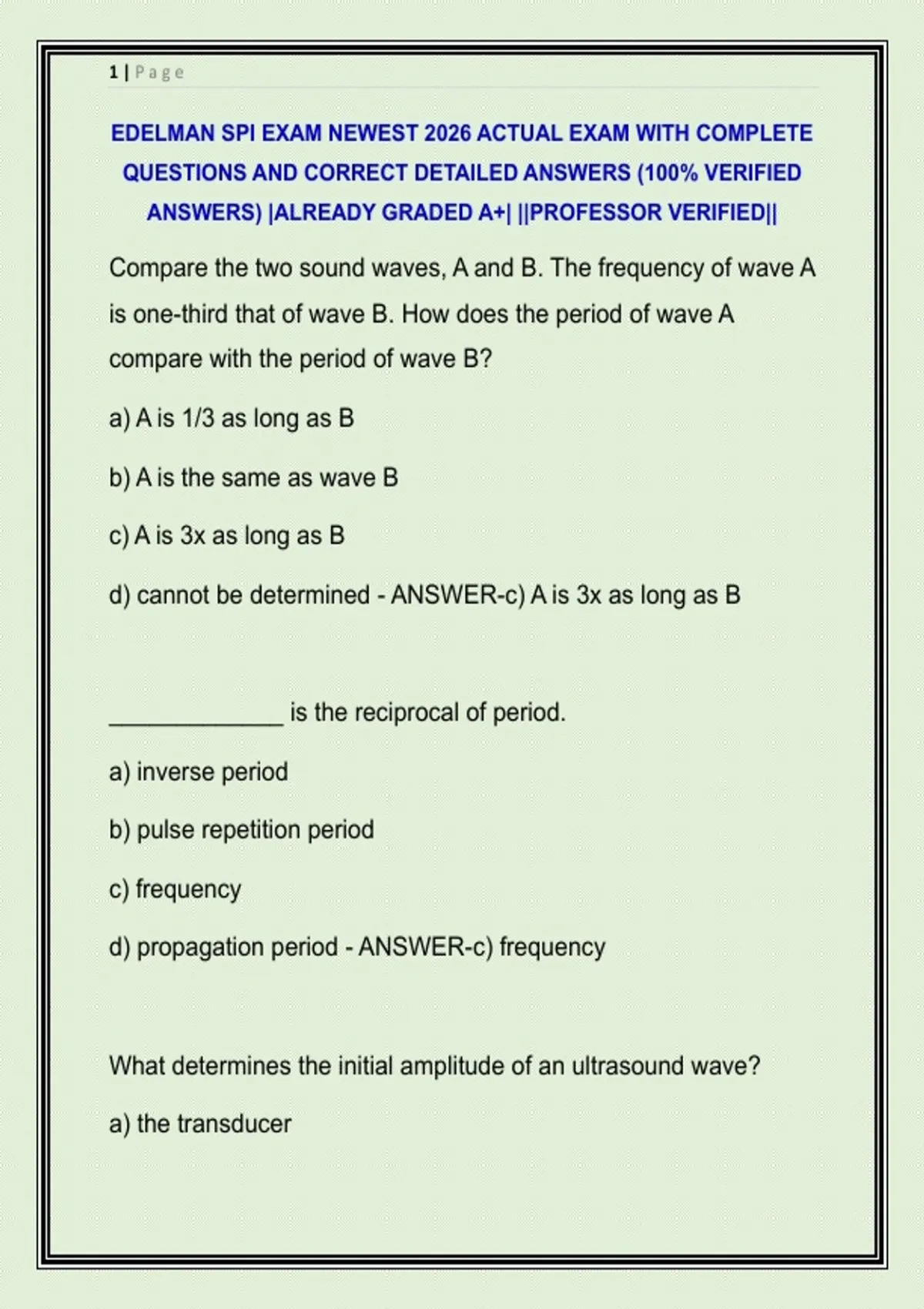 wave produced by a transducer. - ANSWER-True.