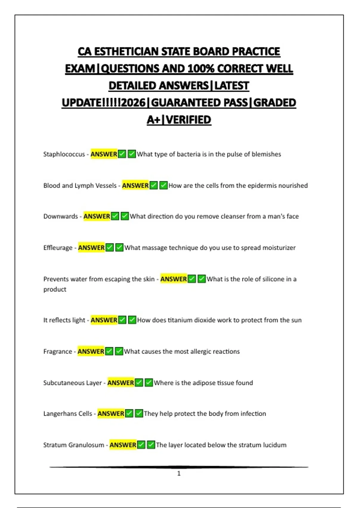 CA ESTHETICIAN STATE BOARD PRACTICE EXAM|QUESTIONS AND 100% CORRECT WELL DETAILED ANSWERS|LATEST UPDATE!!!!!2026|GUARANTEED PASS|GRADED A+|VERIFIED
