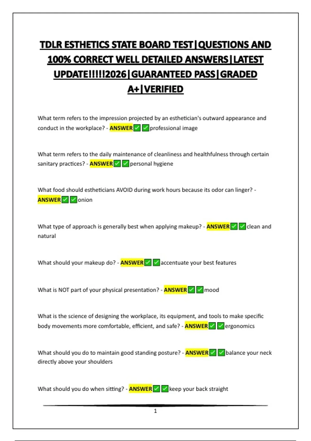 TDLR ESTHETICS STATE BOARD TEST|QUESTIONS AND 100% CORRECT WELL DETAILED ANSWERS|LATEST UPDATE!!!!!2026|GUARANTEED PASS|GRADED A+|VERIFIED