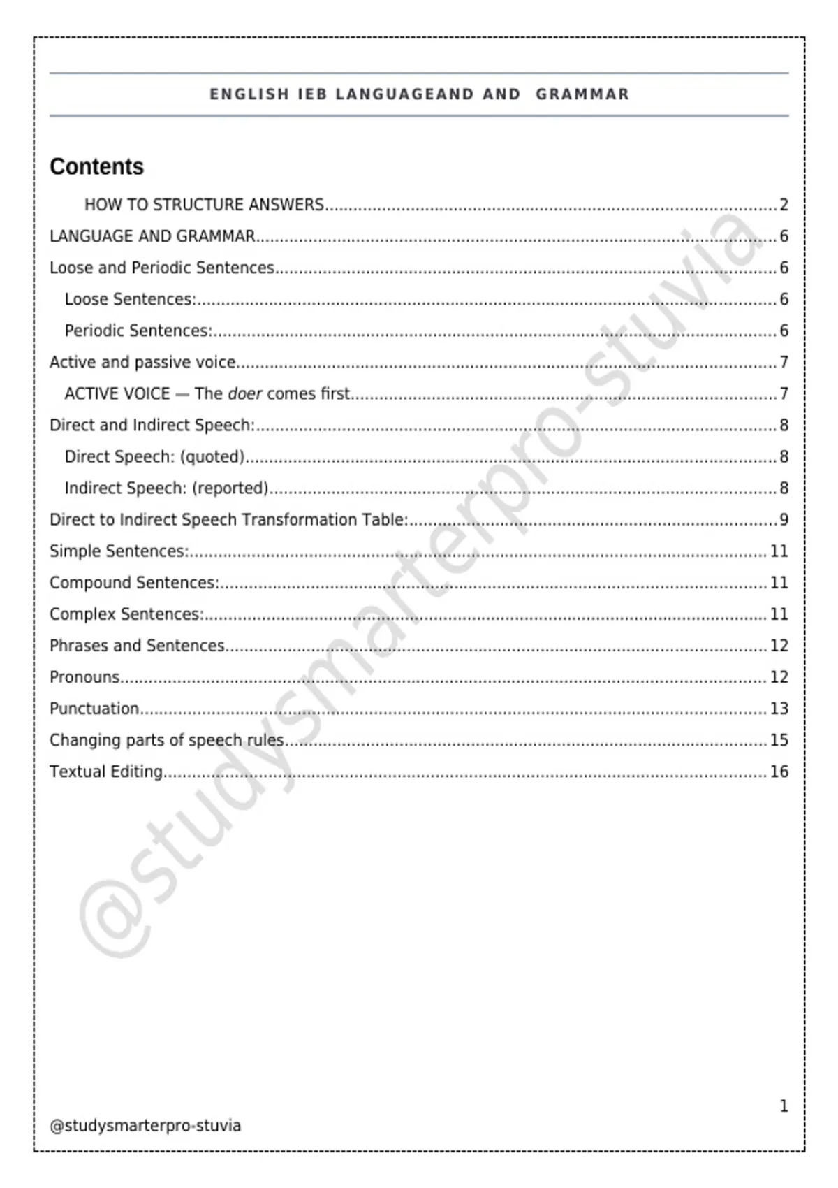 English IEB Language and Grammar – Paper 1 Study Notes and Skills This study guide is designed to help students master everything needed for English Paper 1. It covers textual editing, comprehension, and language skills, with a focus on grammar, punctuation, and literary techniques. Students will learn how to analyse texts, understand visual and literary features, and apply language rules correctly. The guide includes examples, summaries, and explanations, making it perfect for learners who need quick, clear, and practical revision. It is ideal for students who want to study efficiently, improve their English skills, and perform confidently in exams.