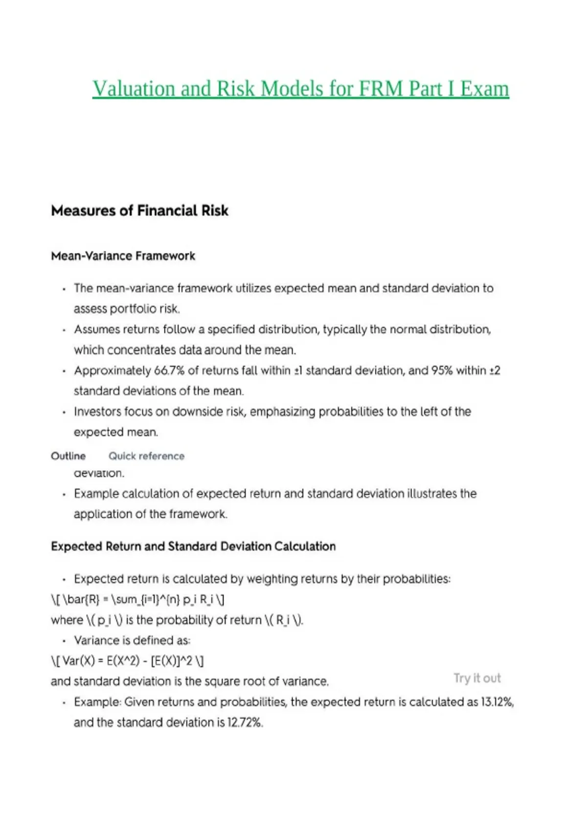 Valuation and Risk Models for FRM Part I Exam