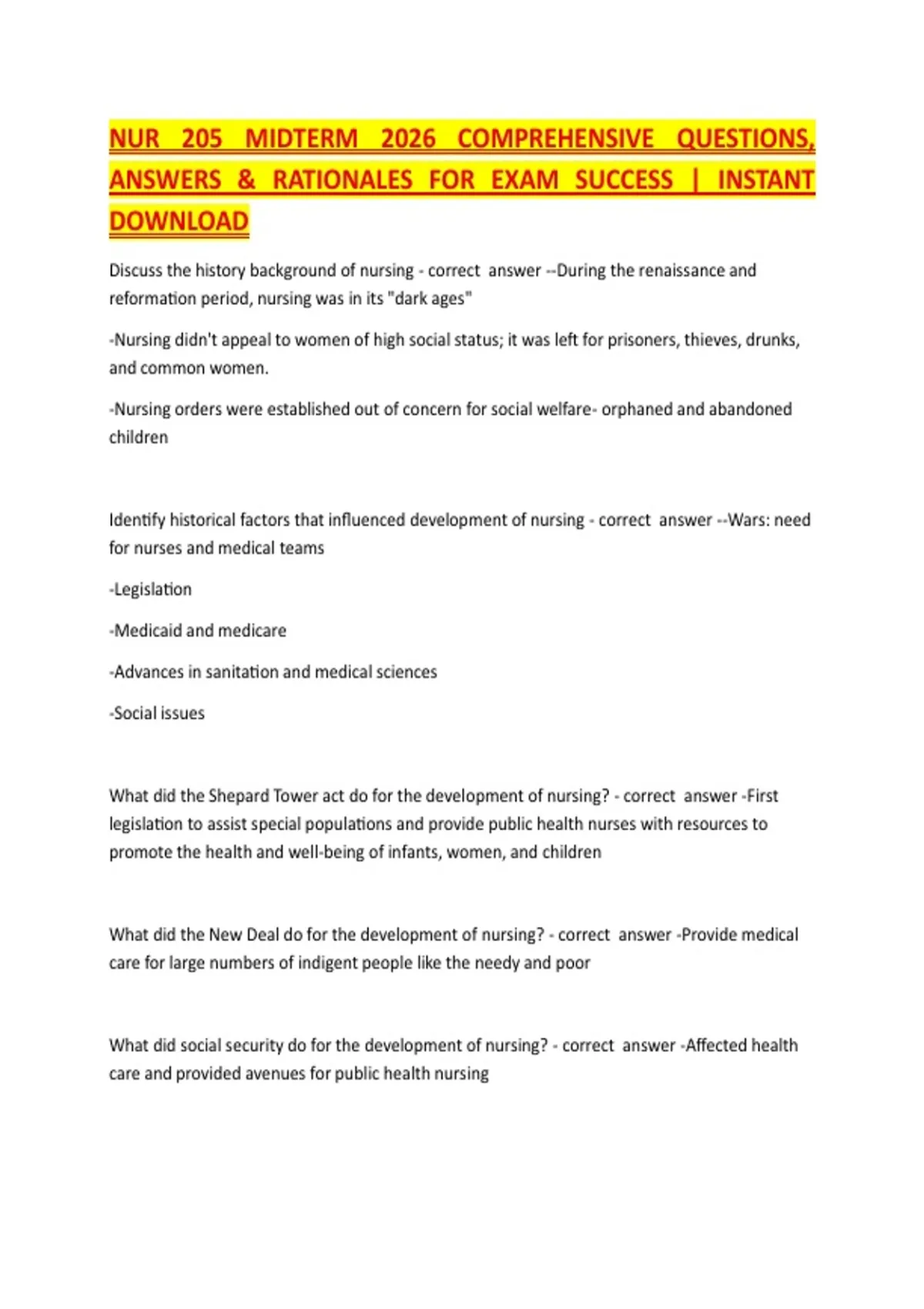 ANSWERS & RATIONALES FOR EXAM SUCCESS | INSTANT