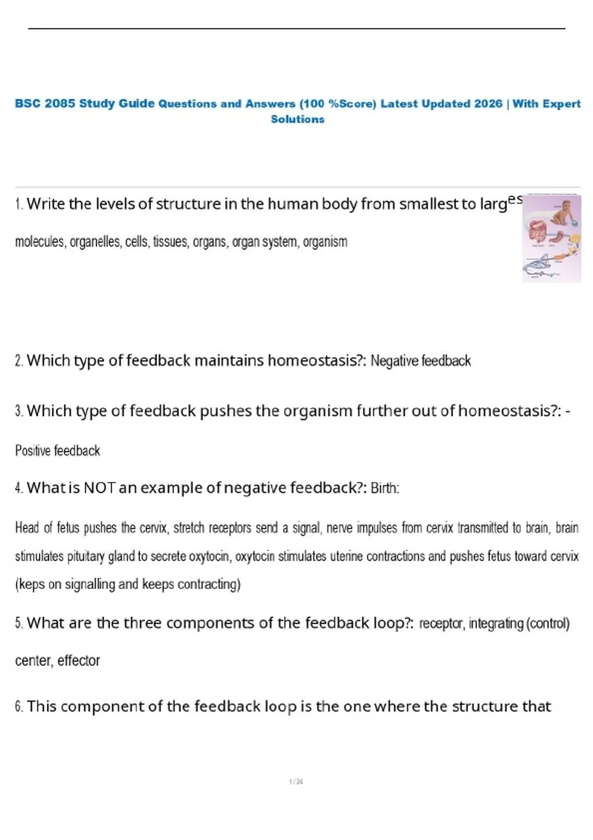 BSC 2085 Study Guide Questions and Answers (100 %Score) Latest Updated 2026 | With Expert Solutions