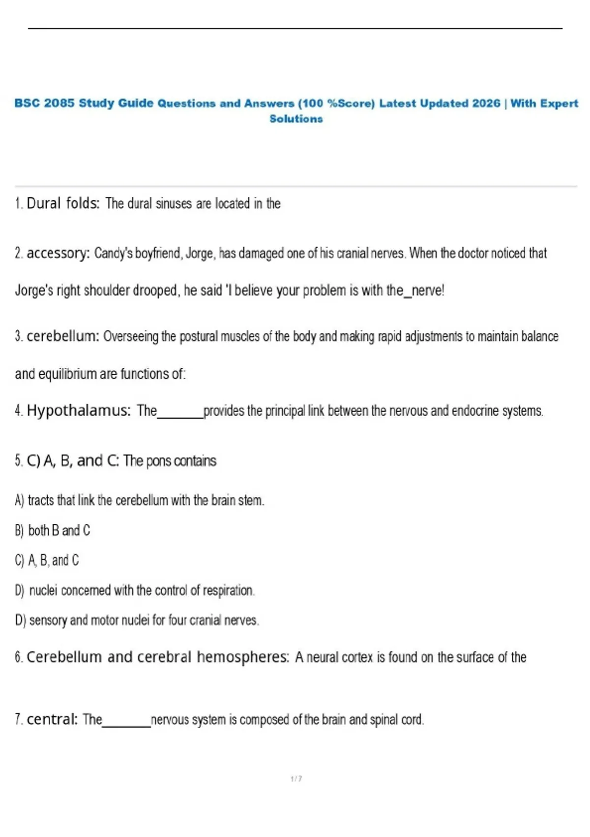 BSC 2085 Study Guide Questions and Answers (100 %Score) Latest Updated 2026 | With Expert Solutions