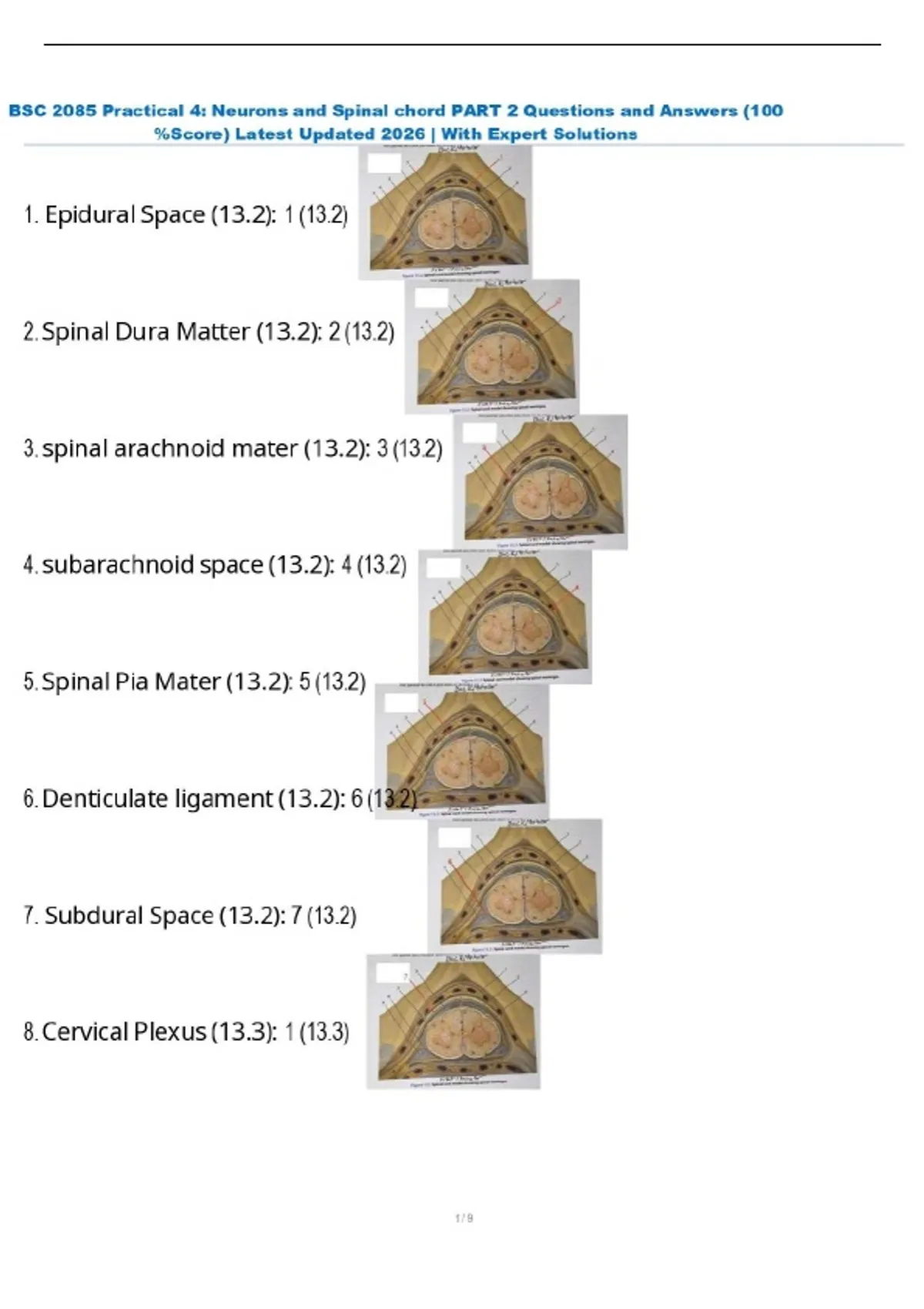 BSC 2085 Practical 4: Neurons and Spinal chord PART 2 Questions and Answers (100 %Score) Latest Updated 2026 | With Expert Solutions