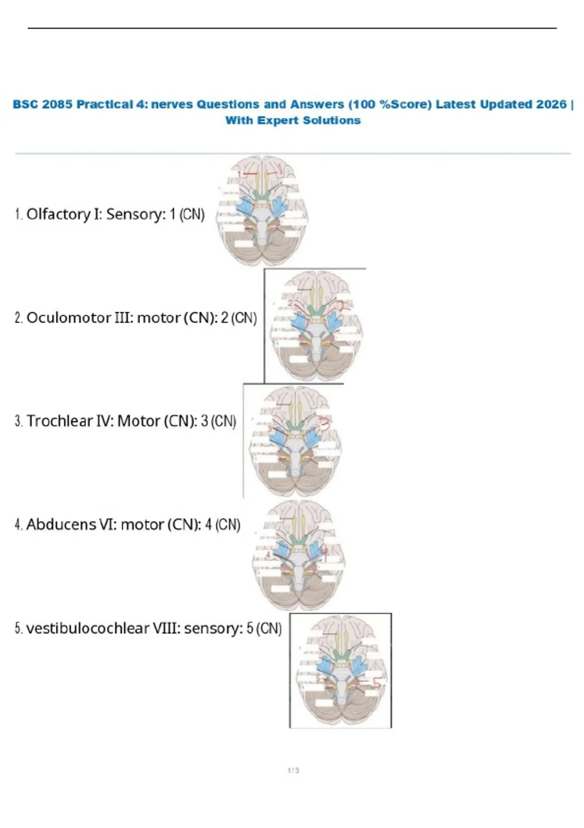 BSC 2085 Practical 4: nerves Questions and Answers (100 %Score) Latest Updated 2026 | With Expert Solutions