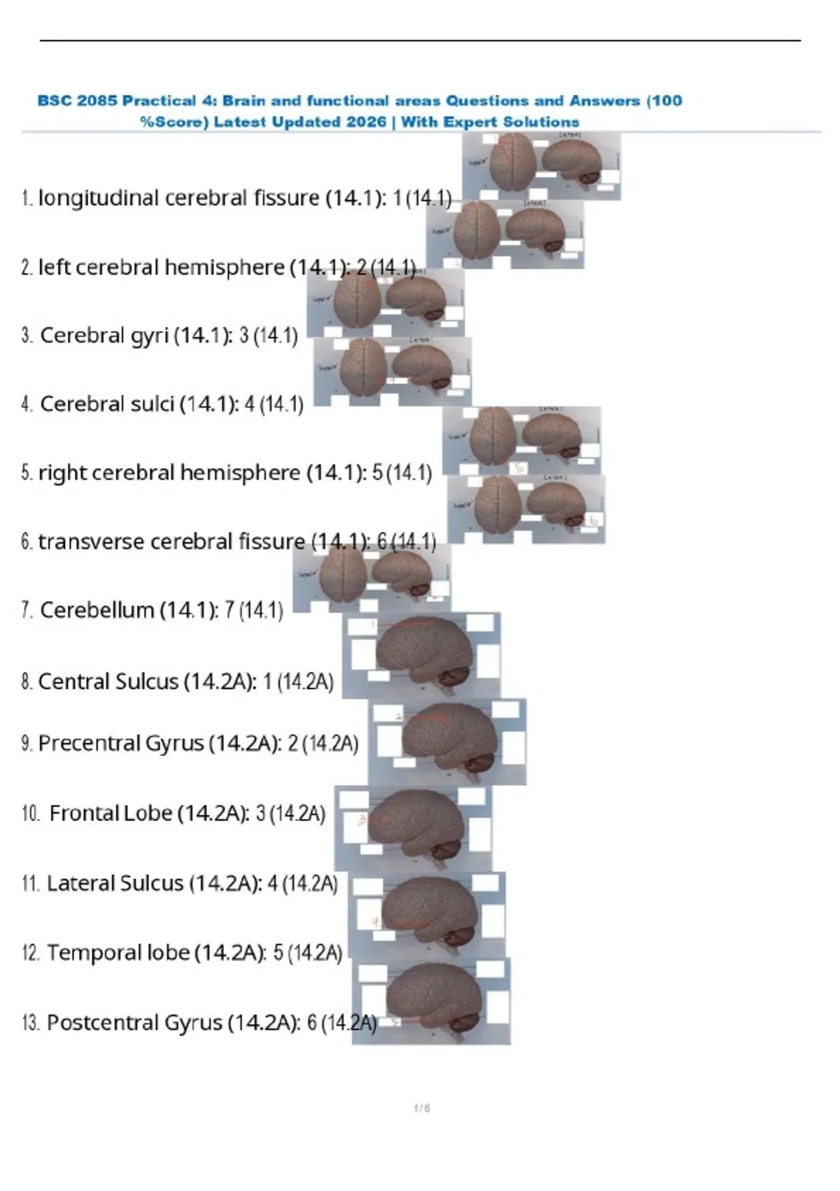 BSC 2085 Practical 4: Brain and functional areas Questions and Answers (100 %Score) Latest Updated 2026 | With Expert Solutions