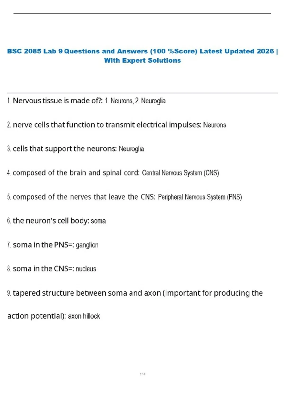 BSC 2085 Lab 9 Questions and Answers (100 %Score) Latest Updated 2026 | With Expert Solutions