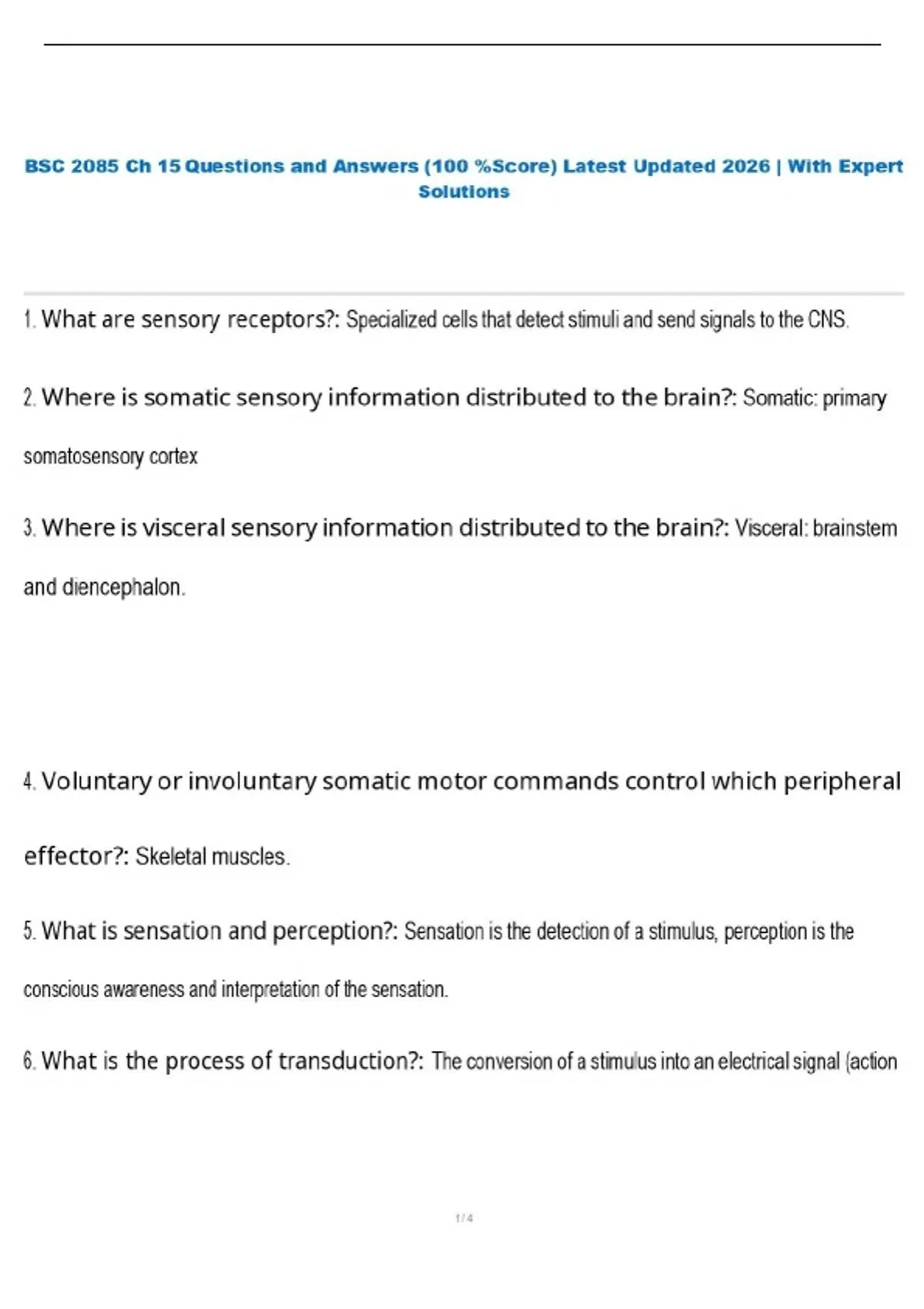 BSC 2085 Ch 15 Questions and Answers (100 %Score) Latest Updated 2026 | With Expert Solutions