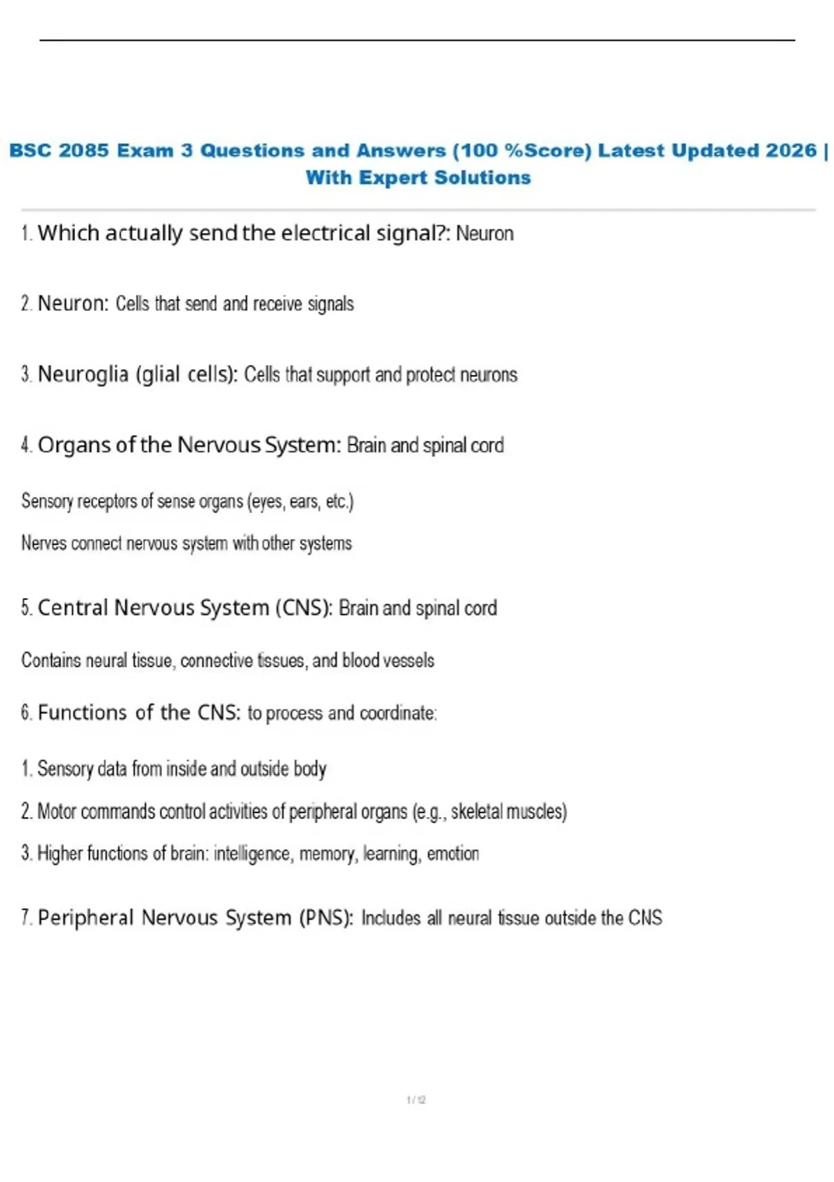 BSC 2085 Exam 3 Questions and Answers (100 %Score) Latest Updated 2026 | With Expert Solutions