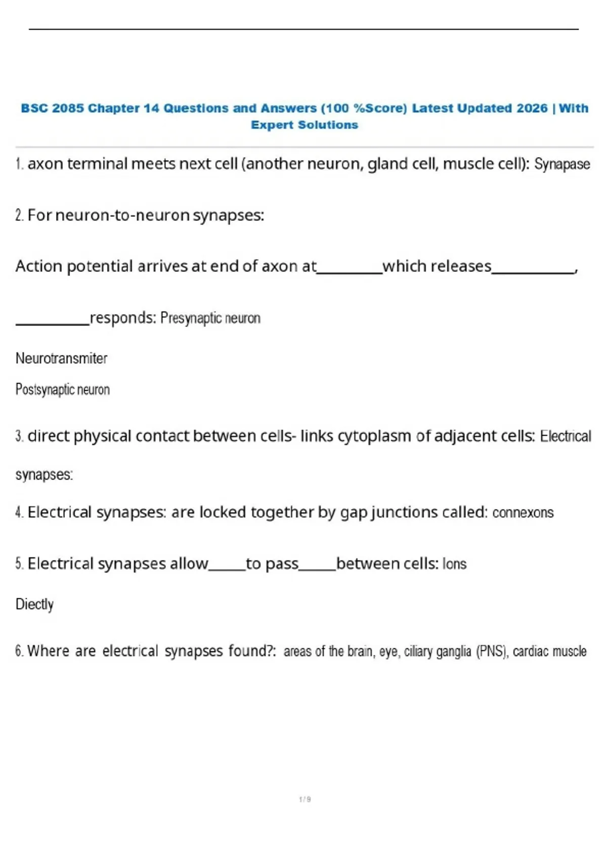 BSC 2085 Chapter 14 Questions and Answers (100 %Score) Latest Updated 2026 | With Expert Solutions