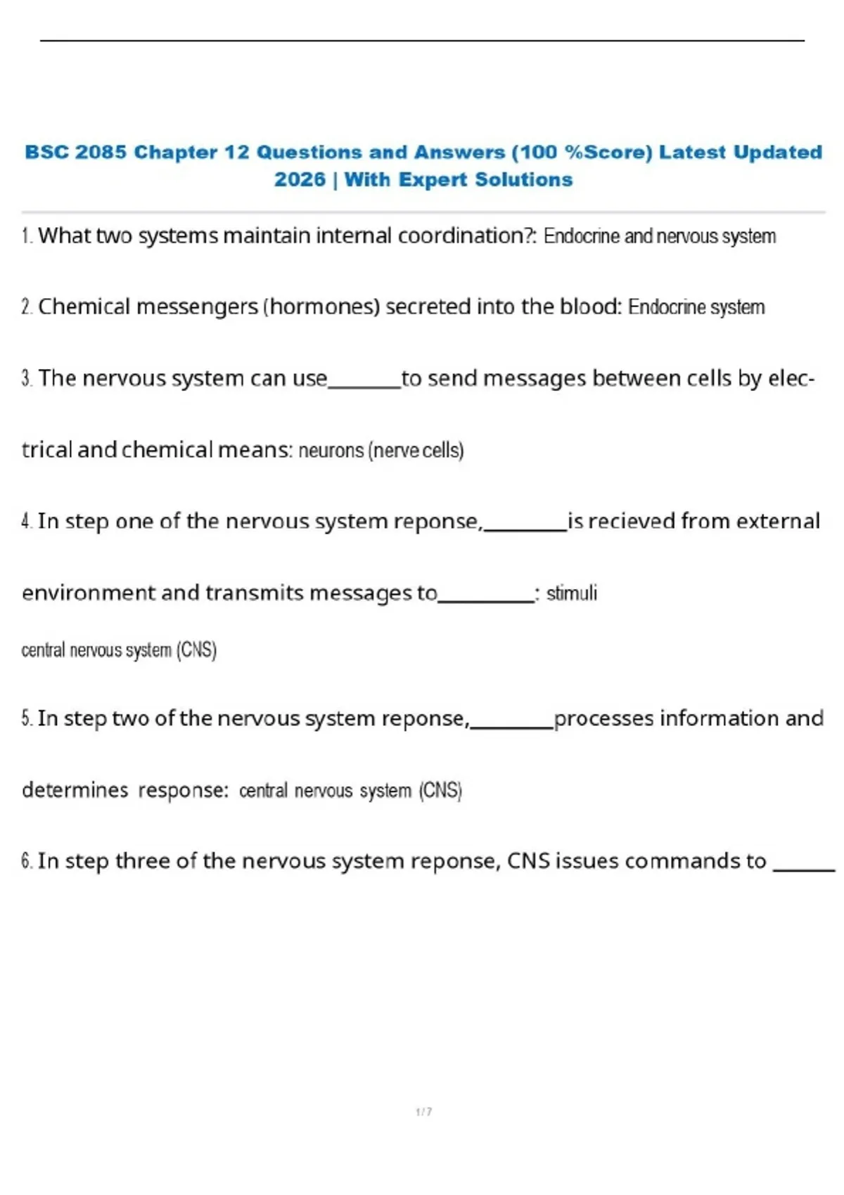 BSC 2085 Chapter 12 Questions and Answers (100 %Score) Latest Updated 2026 | With Expert Solutions