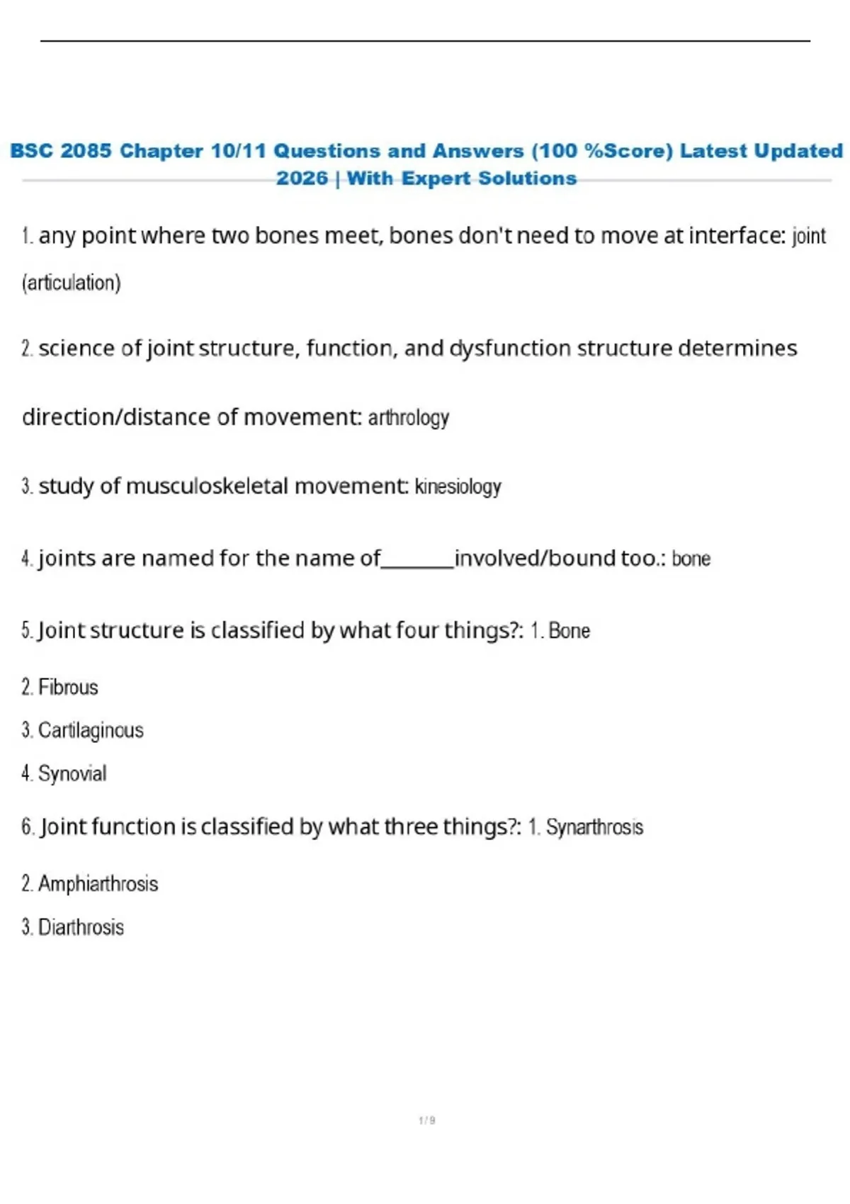 BSC 2085 Chapter 10/11 Questions and Answers (100 %Score) Latest Updated 2026 | With Expert Solutions