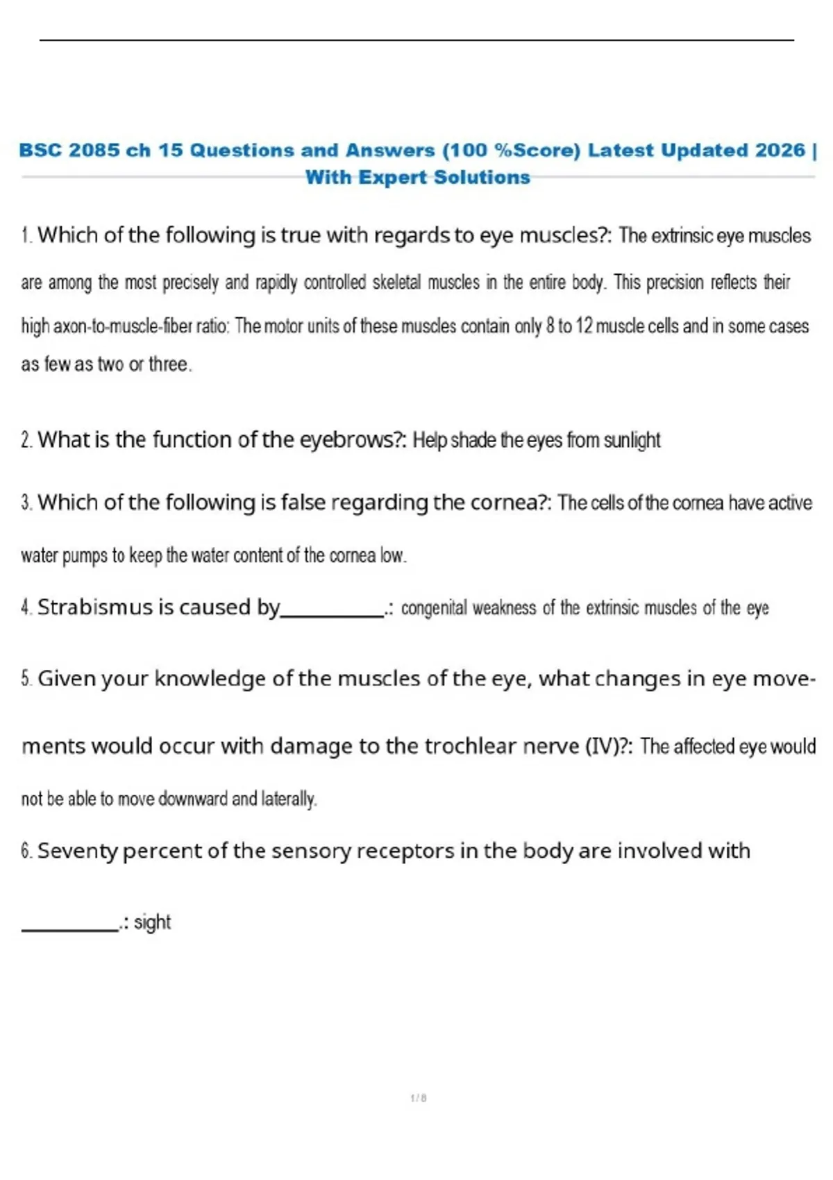 BSC 2085 ch 15 Questions and Answers (100 %Score) Latest Updated 2026 | With Expert Solutions