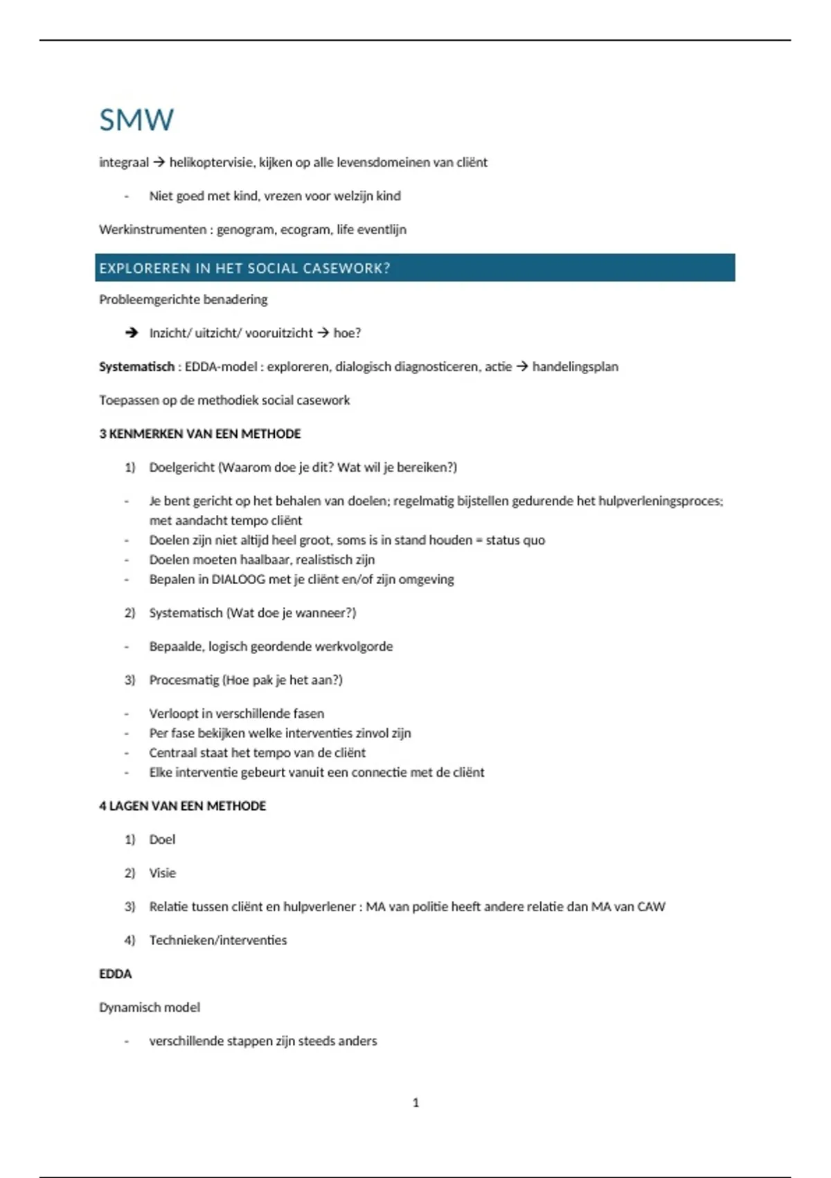 Systematisch : EDDA-model : exploreren, dialogisch diagnosticeren, actie  handelingsplan