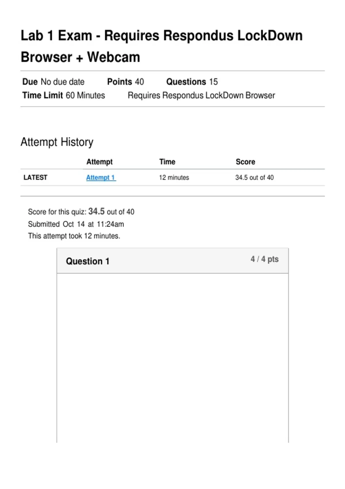 LATEST Attempt 1 12 minutes 34.5 out of 40