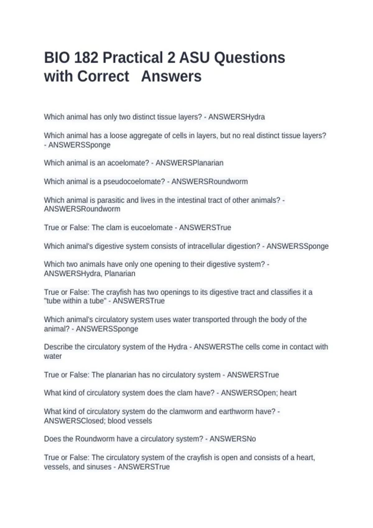 BIO 182 Practical 2 ASU Questions with Correct Answers