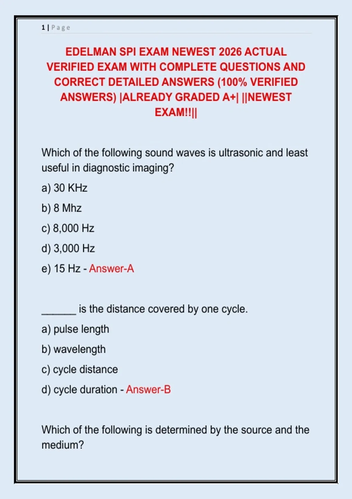 EDELMAN SPI EXAM NEWEST 2026 ACTUAL VERIFIED EXAM WITH COMPLETE QUESTIONS AND CORRECT DETAILED ANSWERS (100% VERIFIED ANSWERS) |ALREADY GRADED A+| ||NEWEST EXAM!!||