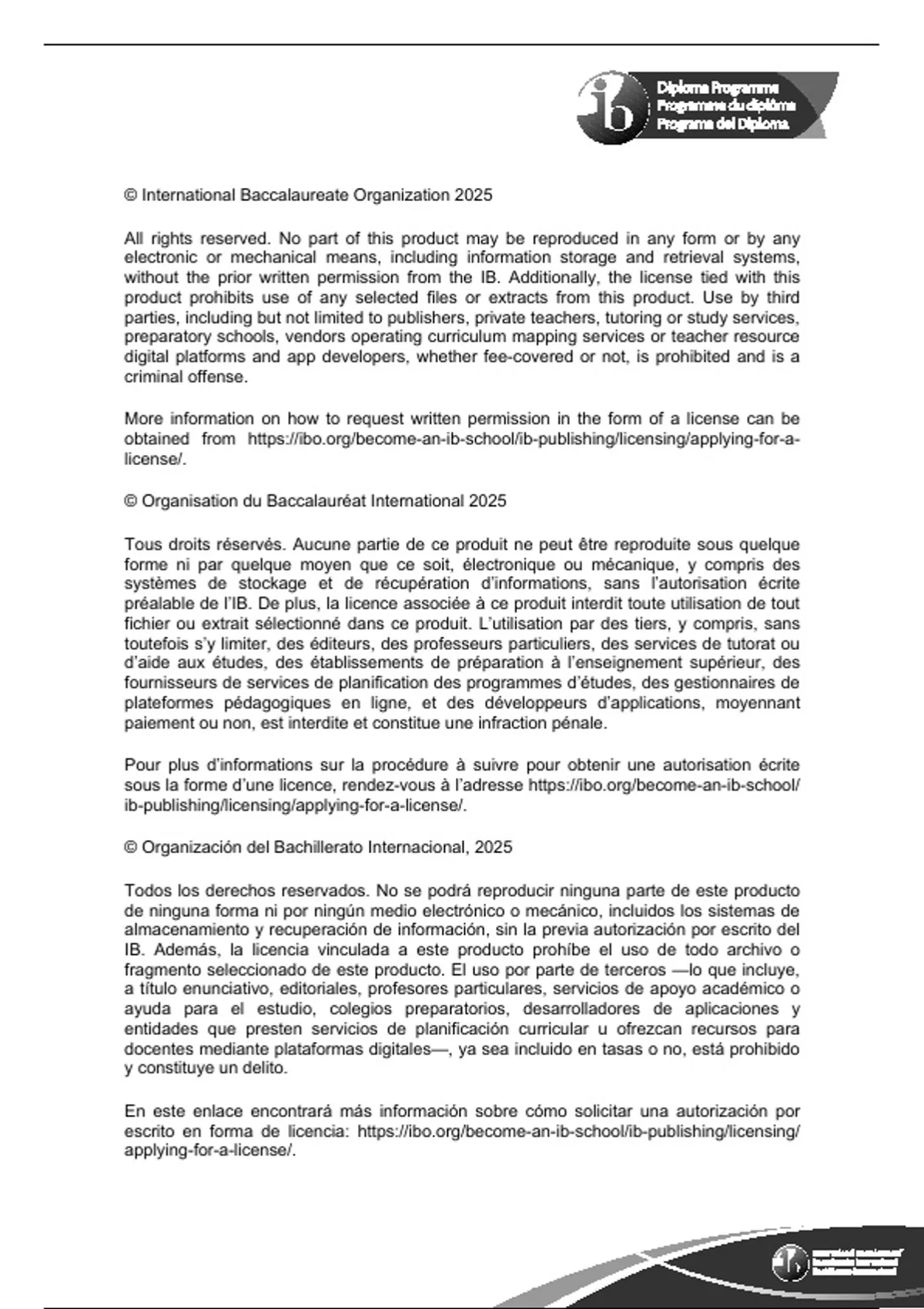 without the prior written permission from the IB. Additionally, the license tied with this