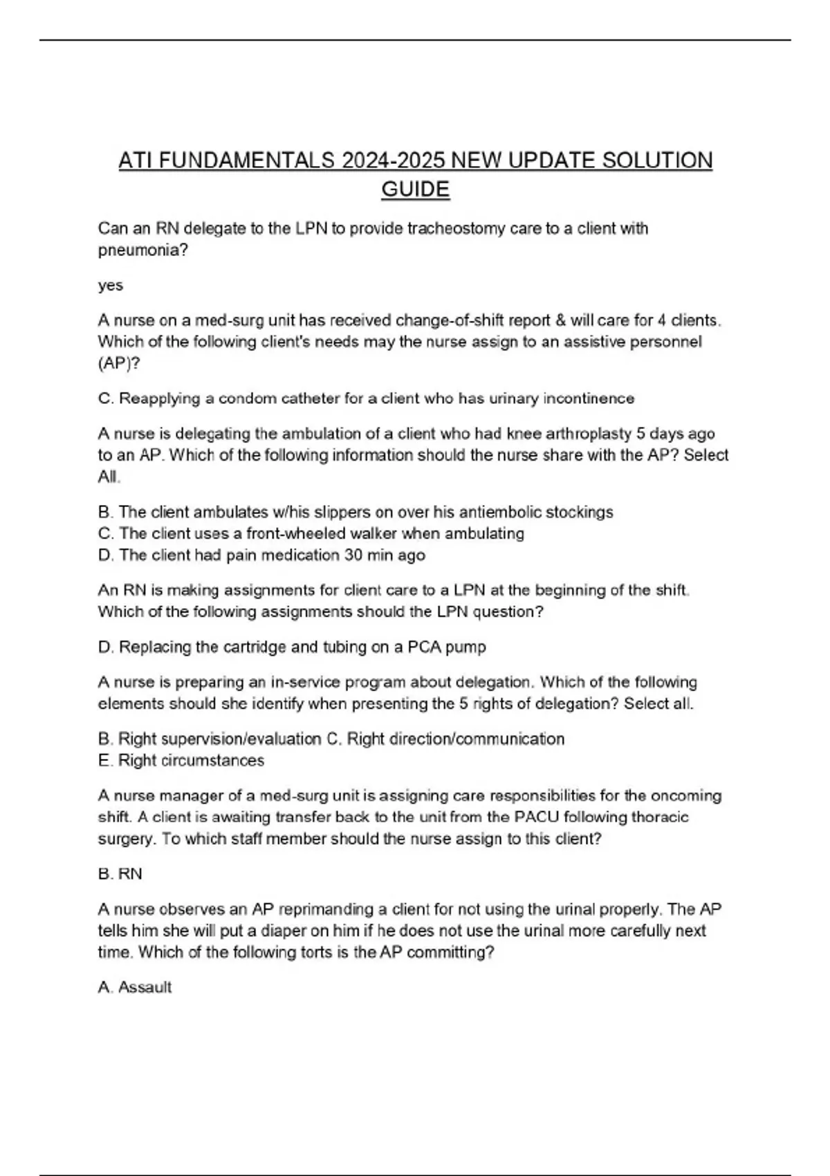 ATI Fundamentals 2024 Newest Actual Exam | Proctored Test Bank with Questions & Answers