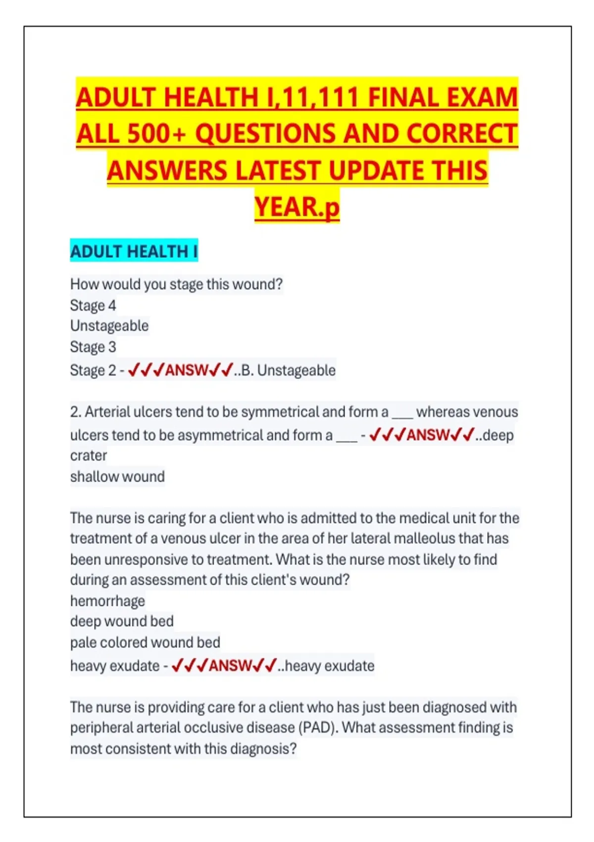 ALL 500+ QUESTIONS AND CORRECT