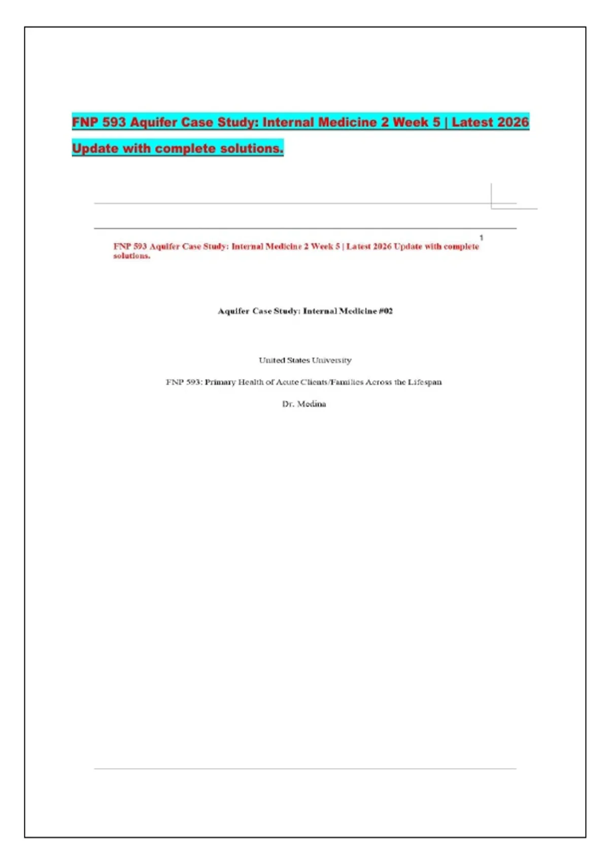 FNP 593 Aquifer Case Study: Internal Medicine 2 Week 5 | Latest 2026 Update with complete solutions.