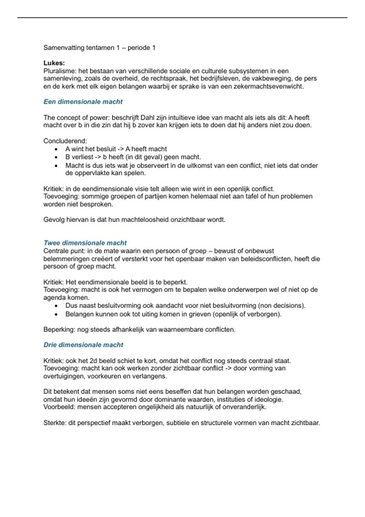 Toevoeging: macht kan ook werken zonder zichtbaar conflict -> door vorming van
