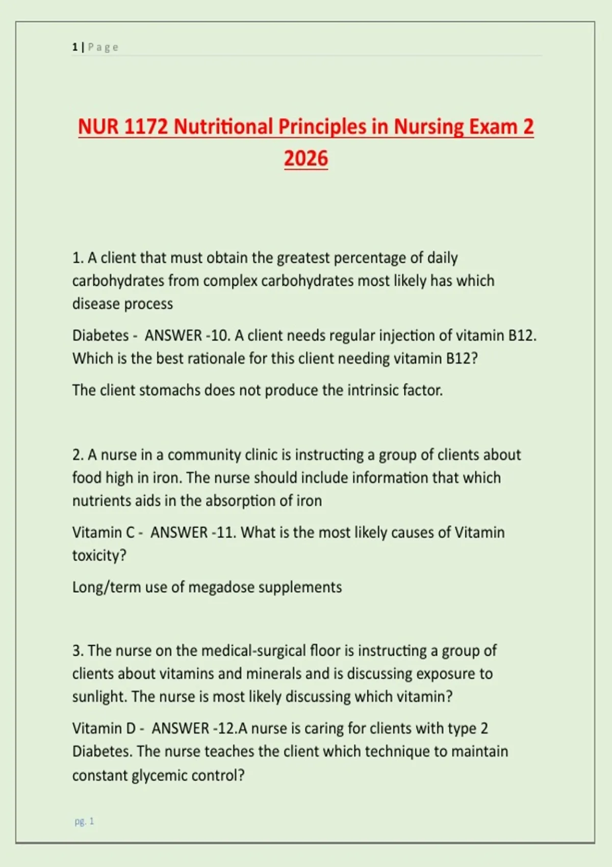 NUR 1172 Nutritional Principles in Nursing Exam 2