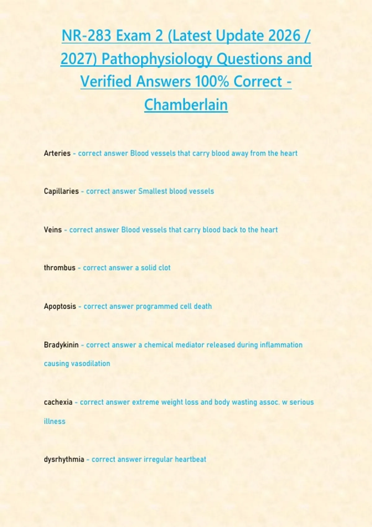 NR-283 Exam 2 (Latest Update ) Pathophysiology Questions and Verified Answers 100-CORRECT - CHAMBERLAIN