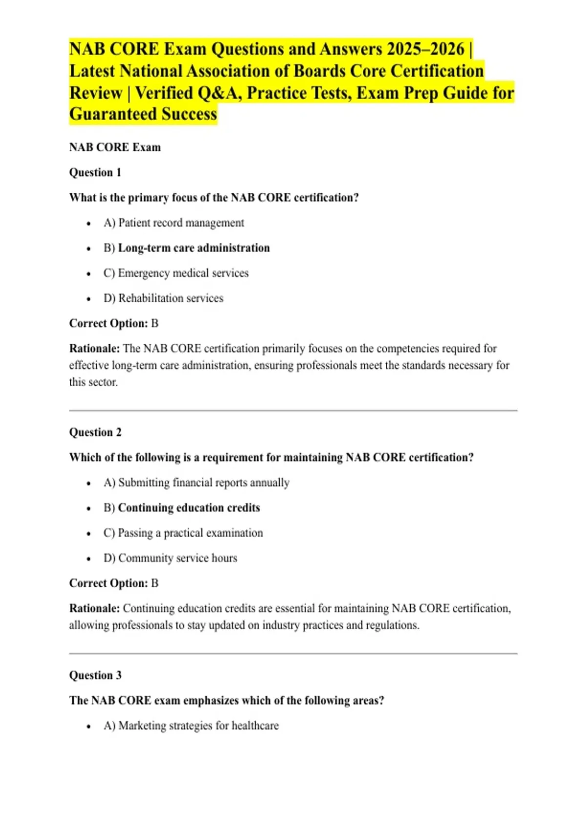 , NAB CORE Exam Questions and Answers 2025–2026 |