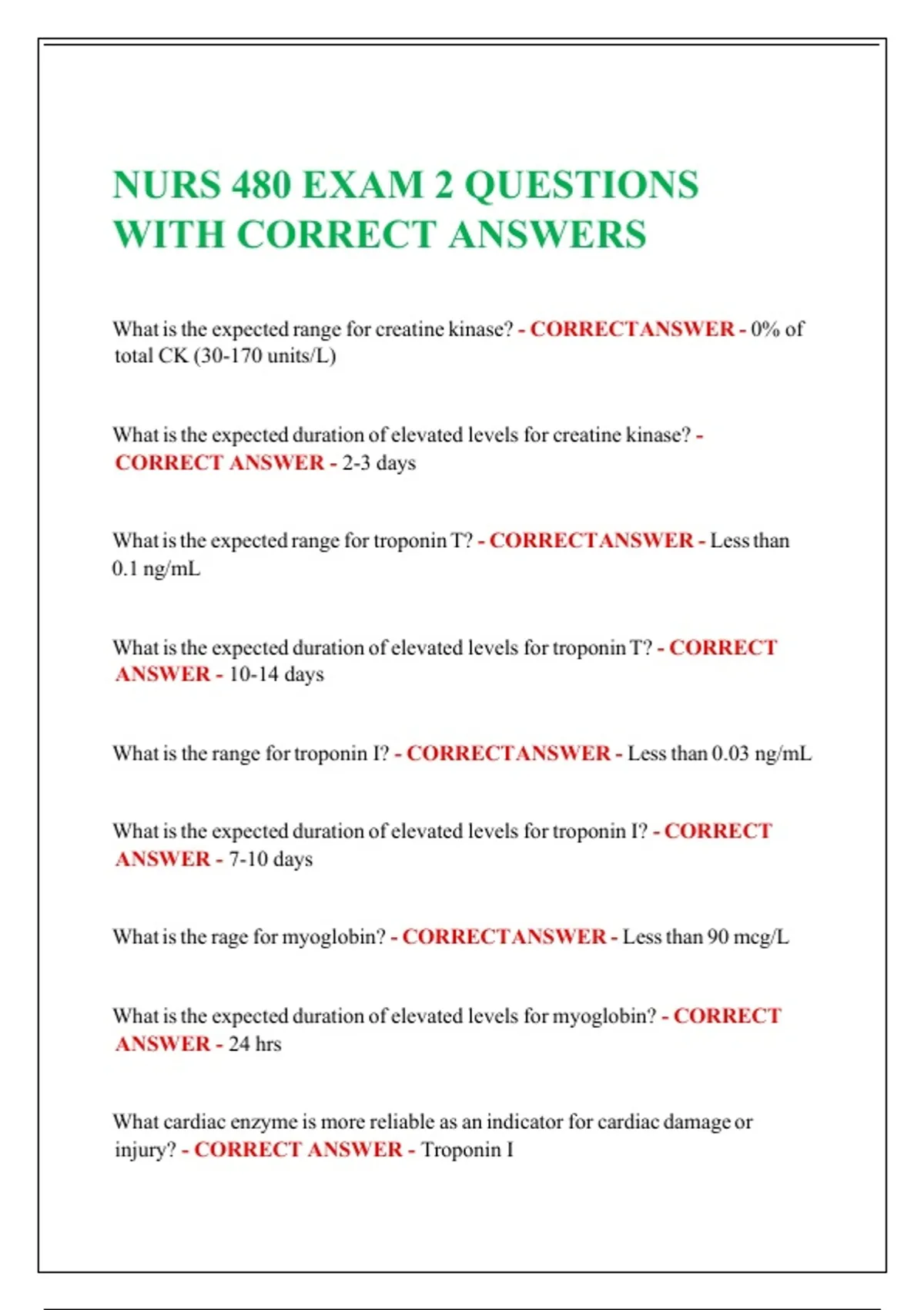 injury? - CORRECT ANSWER - Troponin I