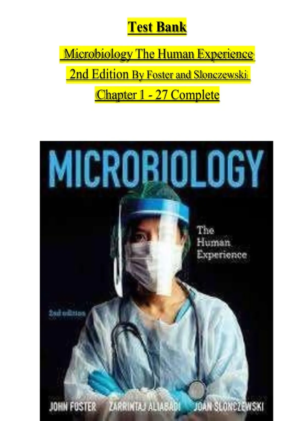 Test Bank For Microbiology: The Human Experience 2nd Edition By Foster, Aliabadi, Slonczewski, Consists Of 27 Complete Chapters, ISBN: 978-0393533248