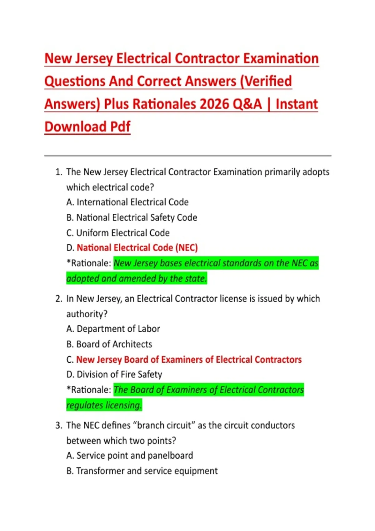 1. The New Jersey Electrical Contractor Examination primarily adopts