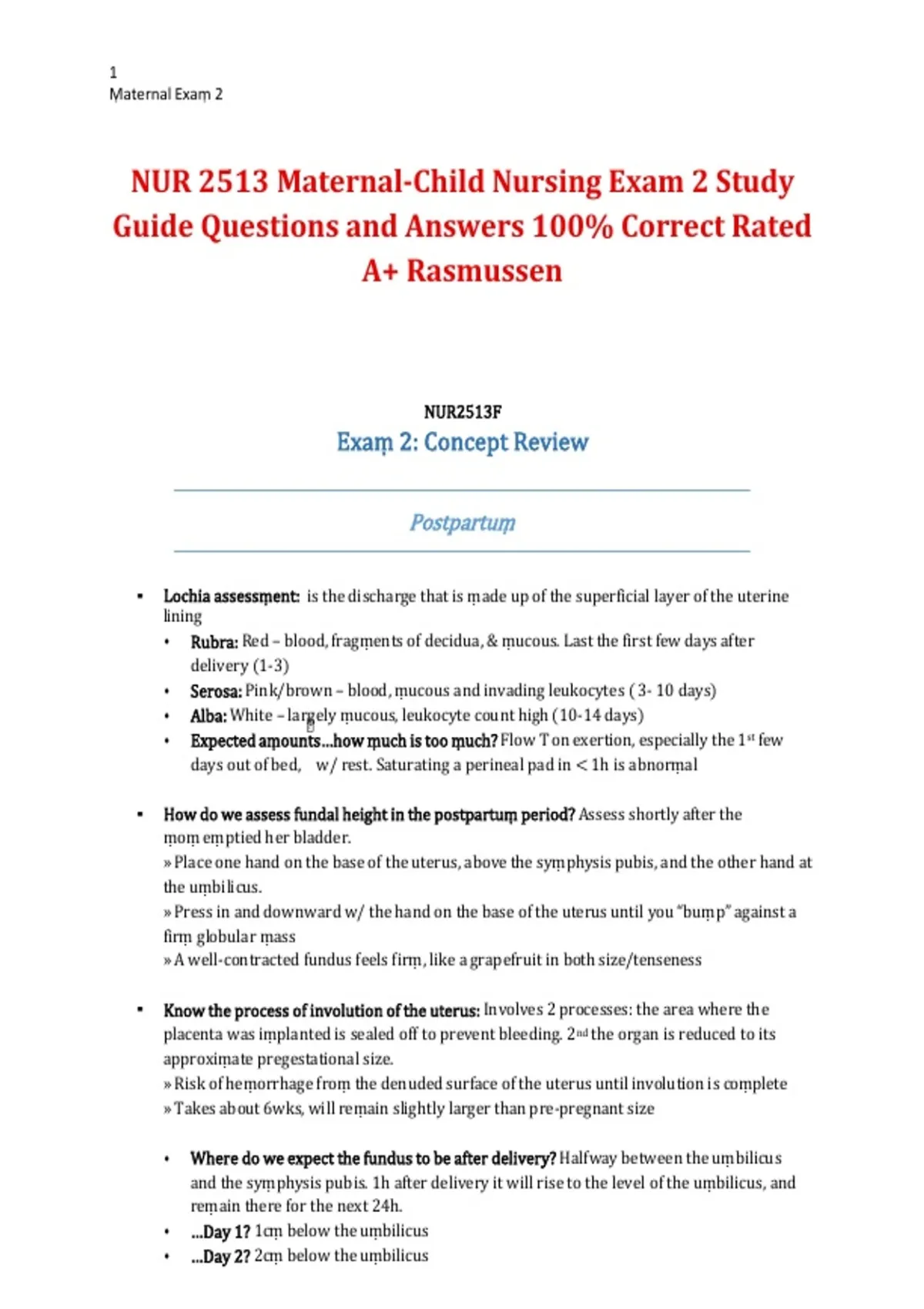 NUR 2513 Maternal-Child Nursing Exam 2 Study