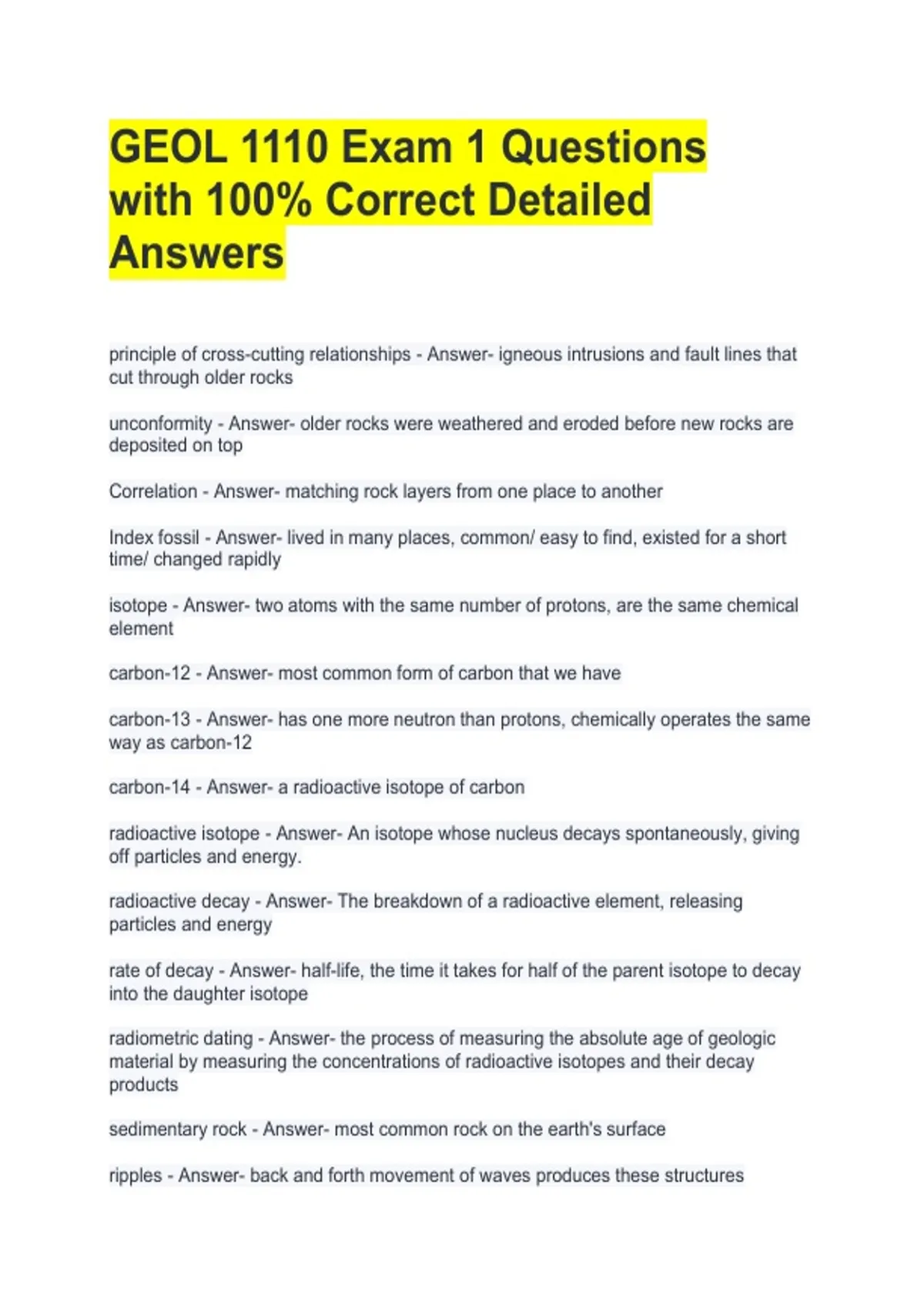 radiometric dating - Answer- the process of measuring the absolute age of geologic