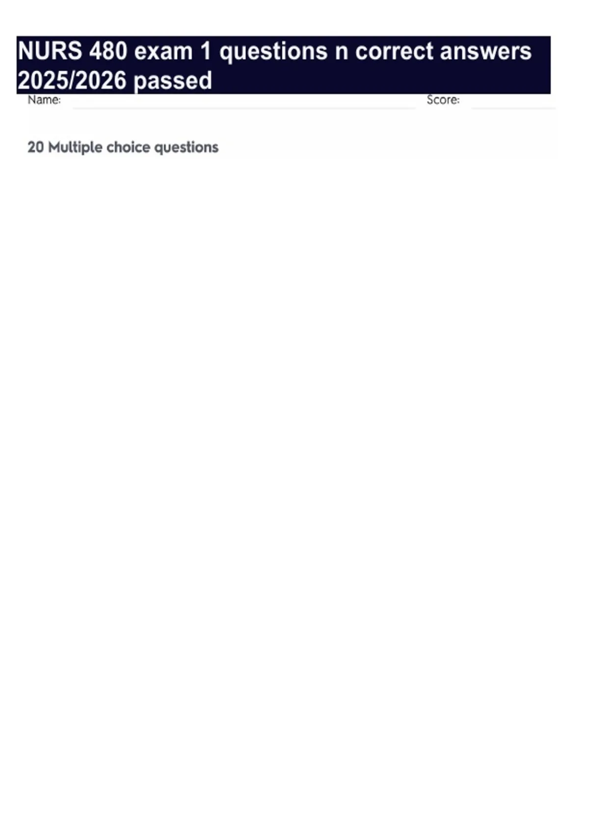 NURS 480 exam 1 questions n correct answers 2025/2026 passed
