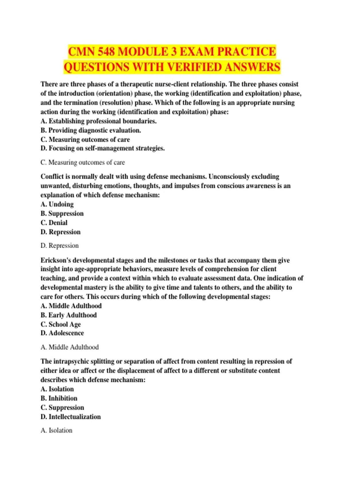 CMN 548 MODULE 3 EXAM PRACTICE QUESTIONS WITH VERIFIED ANSWERS