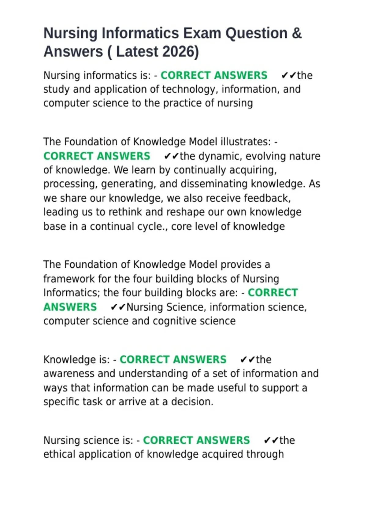 Nursing Informatics Exam Question &
